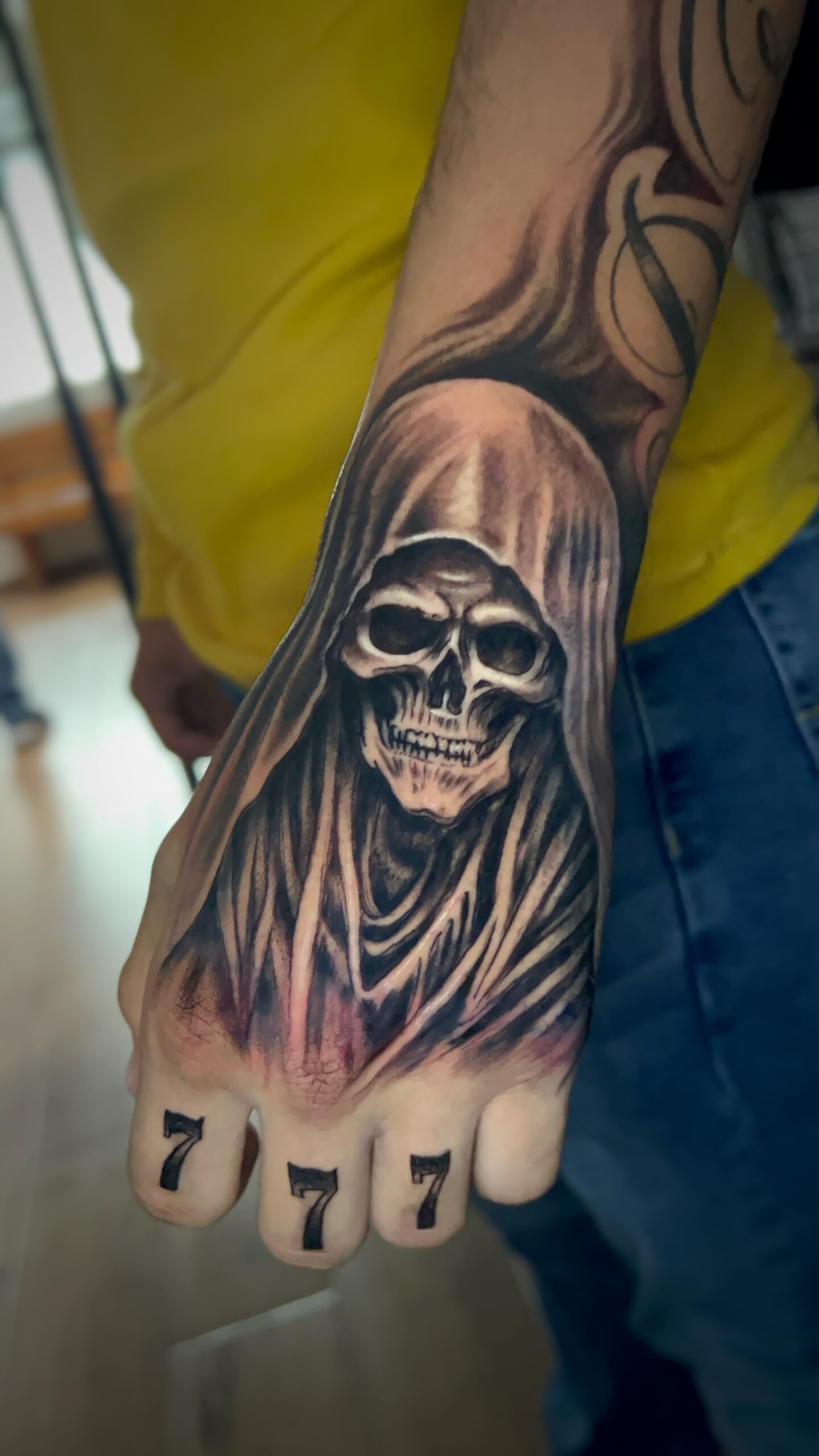 Llevo más de ocho años tatuando y me encanta todo lo relacionado con el realismo chicano y el neotradicional a color. Para mí, cada tatuaje es una oportunidad de crear algo único que refleje la personalidad de quien lo lleva, siempre poniendo pasión y cuidado en cada detalle“.